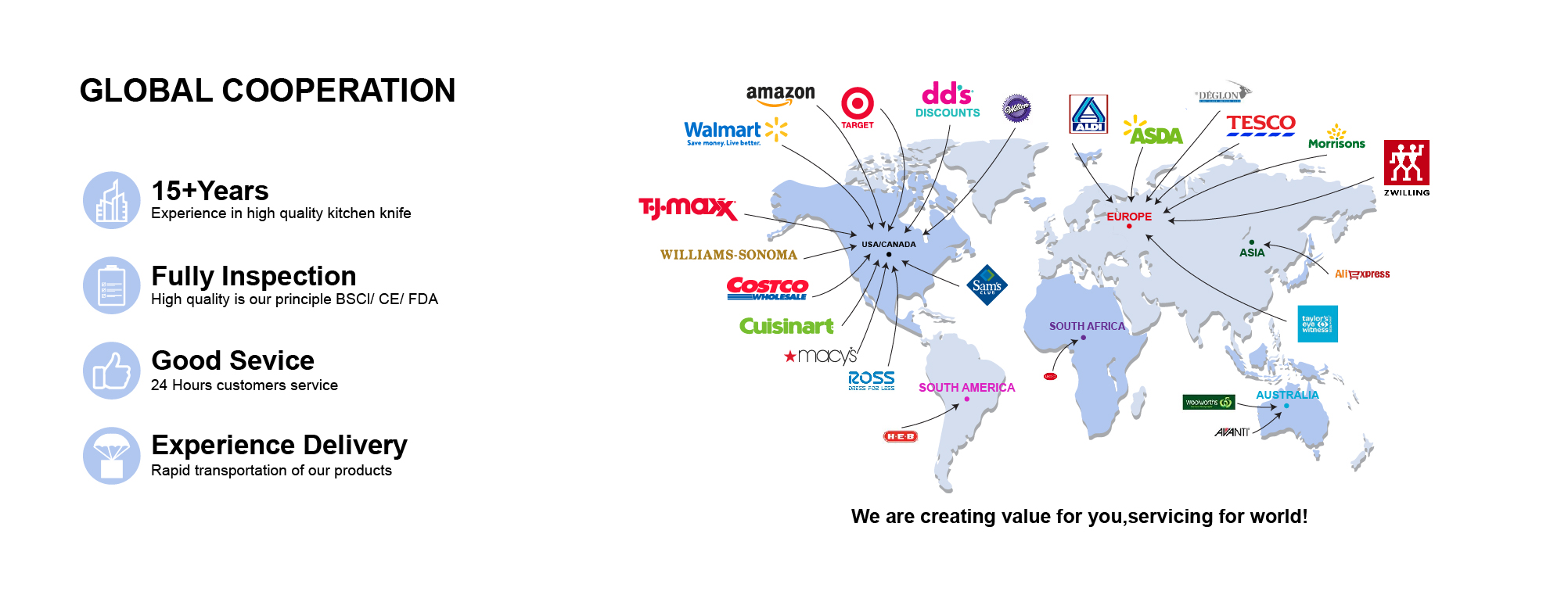 Rooted in the "City of Kives and Scissors", sharing the rich supply chain in Yangjiang, we have grown as a global supplier of premium kitchen cutlery. We combine traditional and modern automated technology to supply premium kitchen knife cutting.
